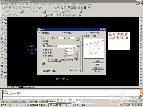 4、在陣列對話框內(nèi),選擇環(huán)形陣列,參數(shù)如下圖