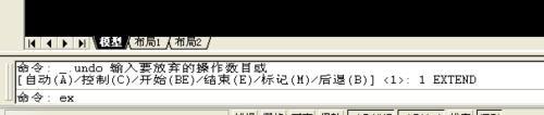 3、在軟件左下角命令行中輸入:ex。