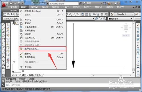 3、在AutoCAD中點擊“編輯”,“選擇性粘貼”: