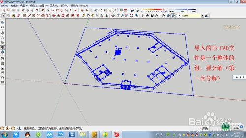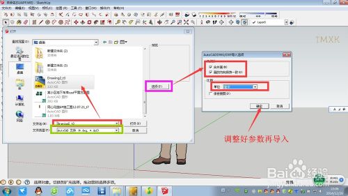 導入SU,單位要為mm。因為cad圖問題變大,按照0.1、0.01等比例縮小。