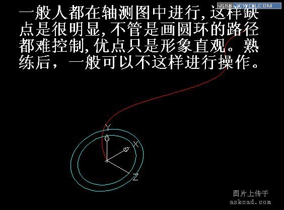 有朋友會問,為什么不在主視圖畫好后,切換到俯視圖中去操作呢。這種操作我也常用的,只是對于這樣的例子我一般不切換視圖,雖然切換視圖有其優點,但切換后統統重疊成一條線,要尋找自己想要那條線,不容易找到!結果轉來轉去,又到軸測圖中進行了。