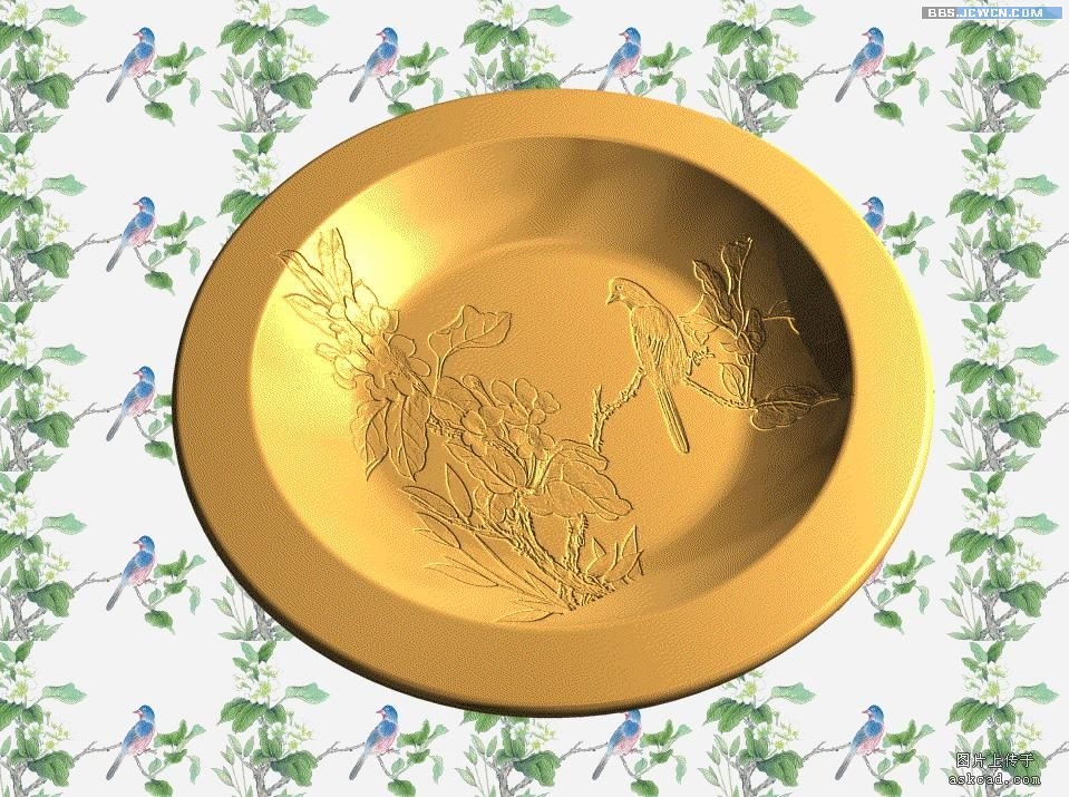 下面這個盤子,與前面又有所不同了,貼上去的圖怎樣變成浮雕的效果呢?
