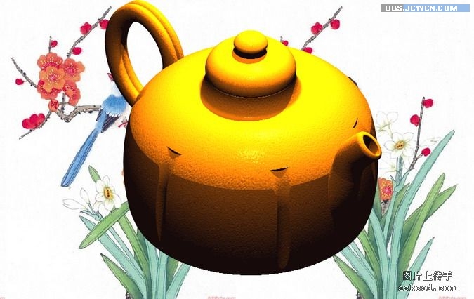看過這幾集的初學朋友應該明白其中的過程了吧,總體上都沒有難度。壺的表面,我用的是凹凸貼圖。