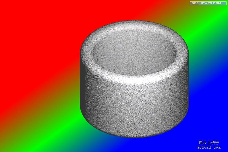 這個操作運用相當多哦,對于制作"浮雕"效果是相當顯著的。"凹凸貼圖"只是用于這種浮雕嗎?不是的,很多運用有待逐步摸索,比如說下圖這種有點如鑄鐵效果的粗糙表面,好象cad材質庫中沒有一模一樣的材質,可以用調整"凹凸貼圖"而得。