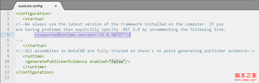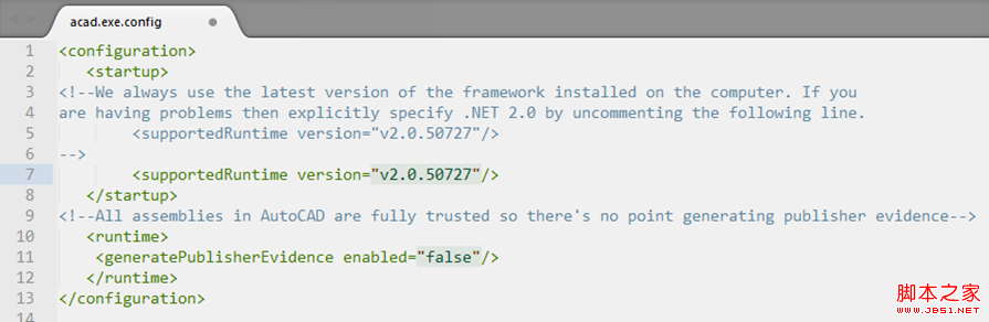 修改AutoCAD的配置文件,這個文件在AutoCAD的安裝目錄下。打開配置文件(acad.exe.config)如下: