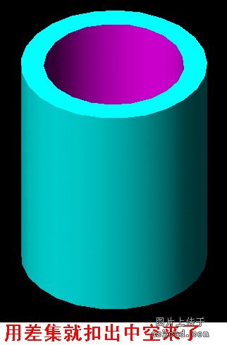 方法一:畫一個大圓柱,然后畫個小圓柱,用大圓柱減去小小圓柱(差集)就可以。