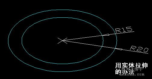 1、兩個同心圓分別拉伸兩個高度,這和第一種方法用圓柱是一樣的,只不過是多了一步"拉伸成圓柱"的過程,然后移動位置便于取差集。