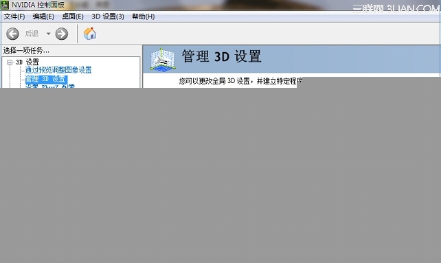 2、進入【NVIDIA控制面板】后,點擊【3D 設置】下的【管理 3D 設置】;然后選擇【程序設置】中的【 選擇要自定義的程序】,點擊【添加】按鈕: