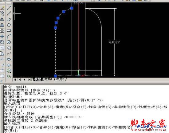 運用PEDIT命令,把剛用線弧組成的鳥籠外框線組成多段線,這樣我們才可能進行拉伸!