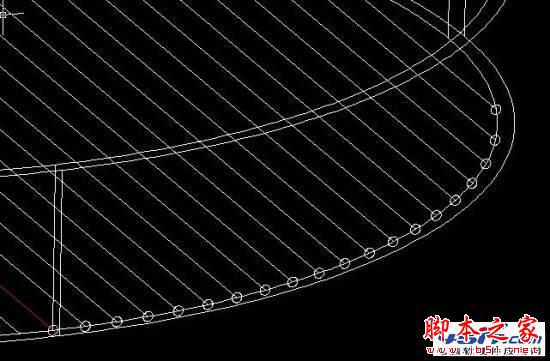 再把圓聯續復制COPY,圓心為每根的端點(復制時,我只復制一半,另外一邊,可用鏡像命令完成)!如圖:
