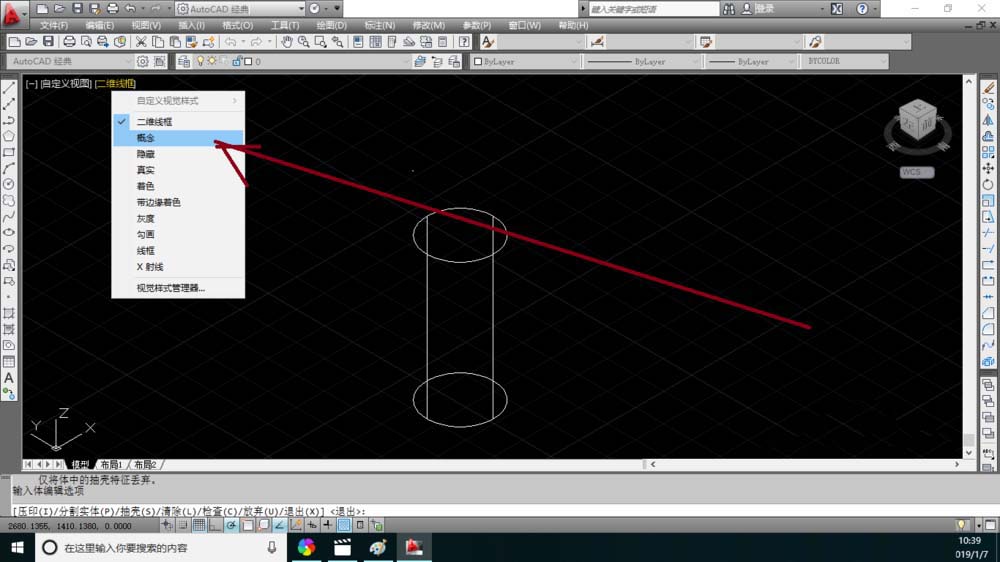 6、此時點擊二維線框選項中選擇點擊概念即可。