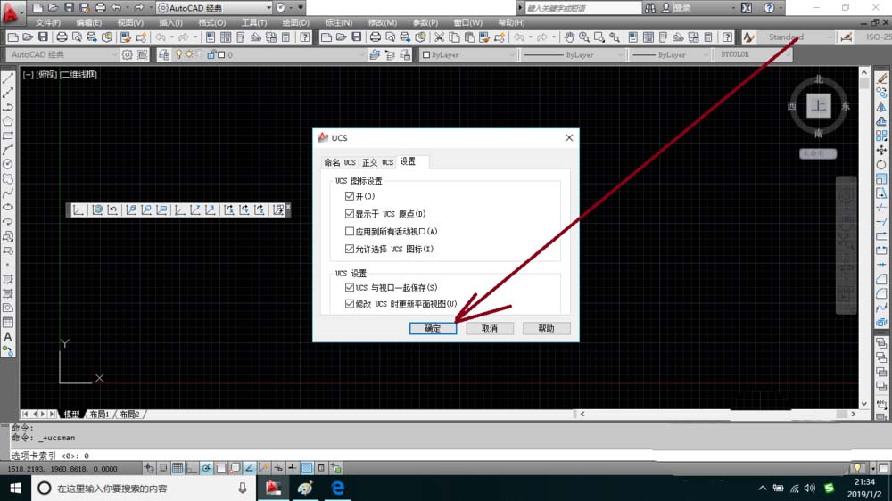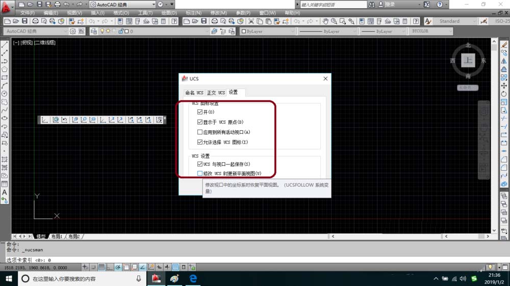 5、在這選項卡中有UCS圖標設置與UCS設置兩個選項欄。