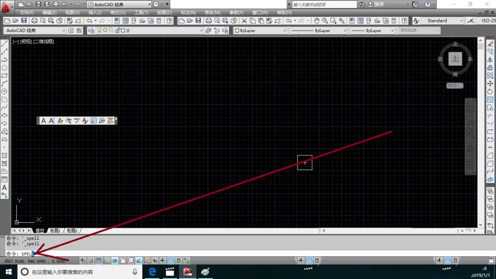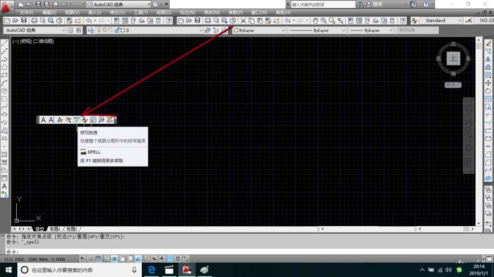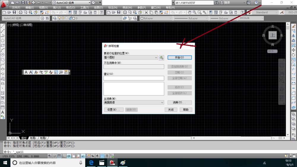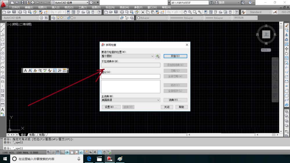 6、在軟件命令欄中輸入spell之后按回車鍵也可以打開拼寫檢查對話框。