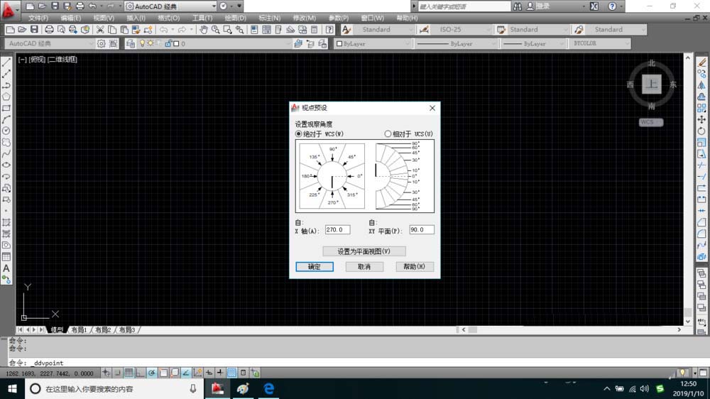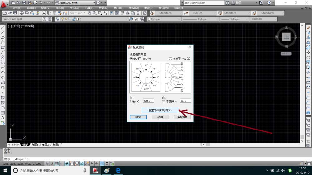7、如果想把視點預設設為平面視圖的話在對話框中點擊設置為平面視圖按鈕再單擊確定按鈕。