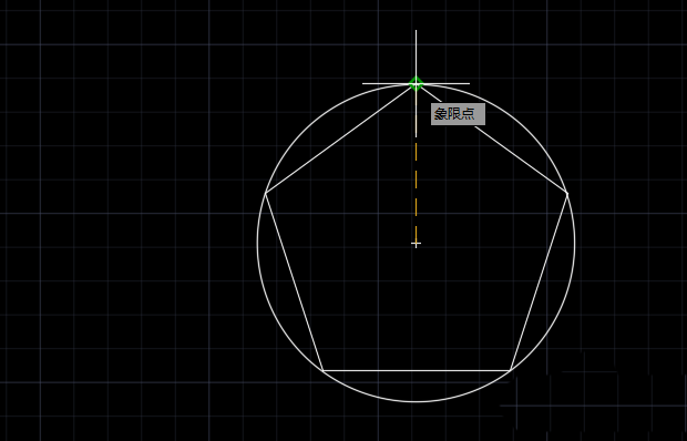 2、然后選擇如下圖位置以圓圓心繪制五邊形,輸入邊數5(快捷命令POL)。