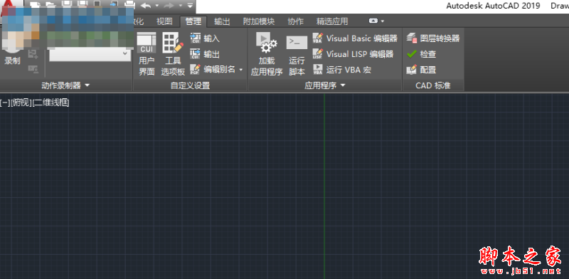 1、首先打開AutoCAD 2019軟件,隨后點擊“管理”功能,點擊以后就可以查看到加載應用程序的功能