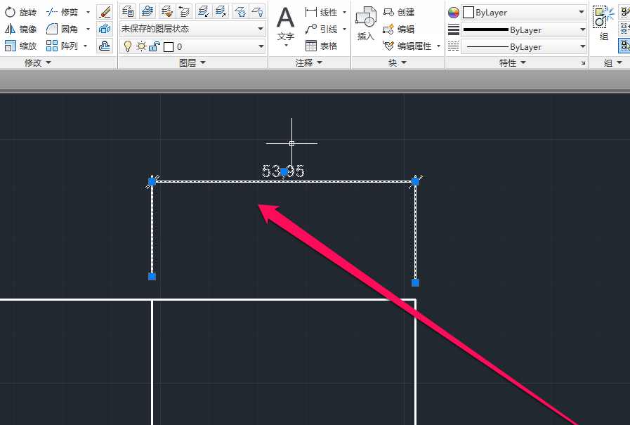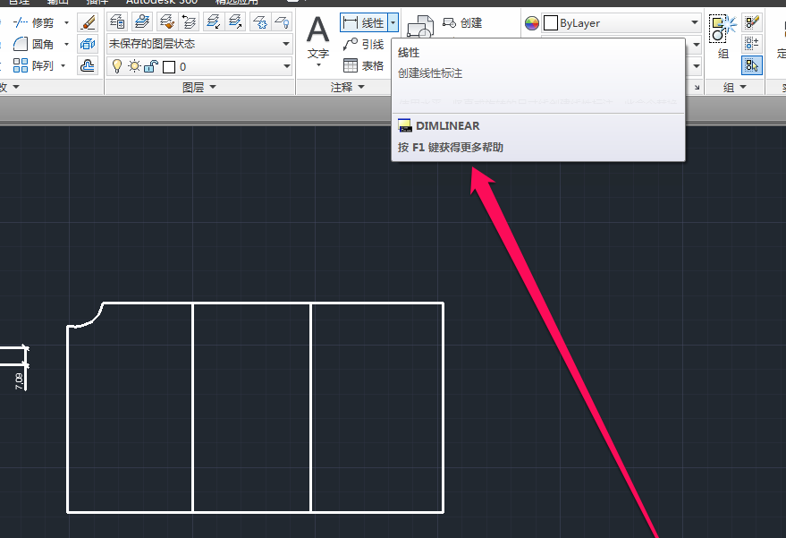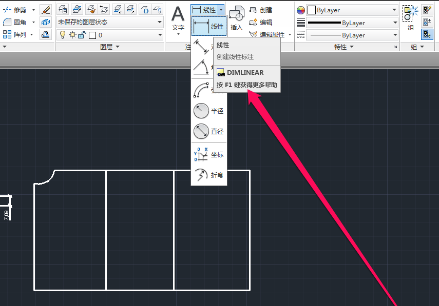 4、點擊線性標注按鈕,將鼠標移動圖形上。
