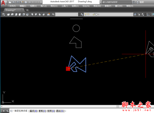 2、首先選中要移動的圖形。然后輸入命令“M”。
