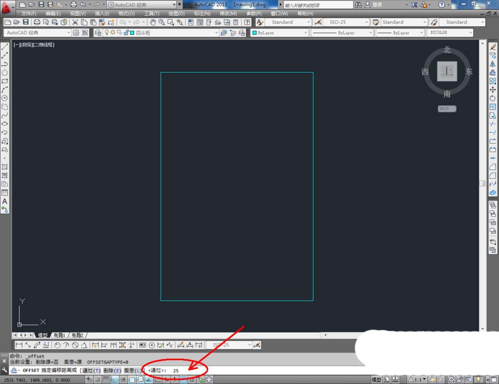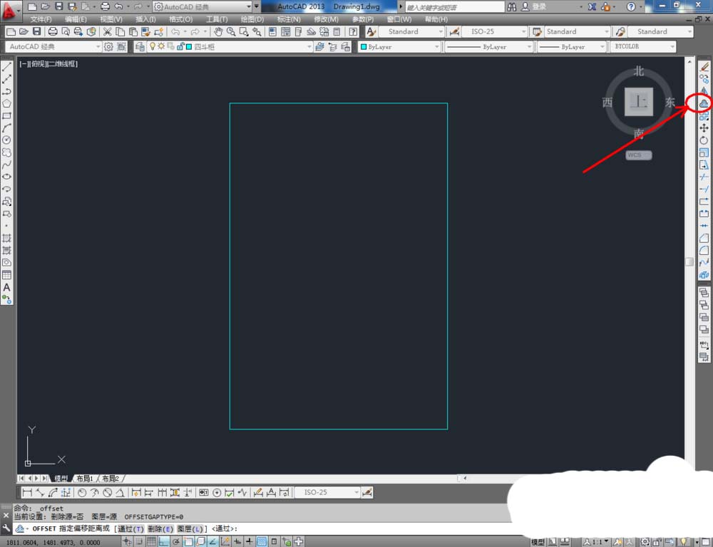 3、點擊右邊工具欄中的【偏移工具】,在命令欄輸入偏移數(shù)值:25后,對左右兩邊以及頂邊進行向內(nèi)偏移操作。在命令欄輸入偏移數(shù)值:80后,對圖案底邊進行向上偏移。完成后按圖示調(diào)整好偏移線條上的節(jié)點(如圖所示);