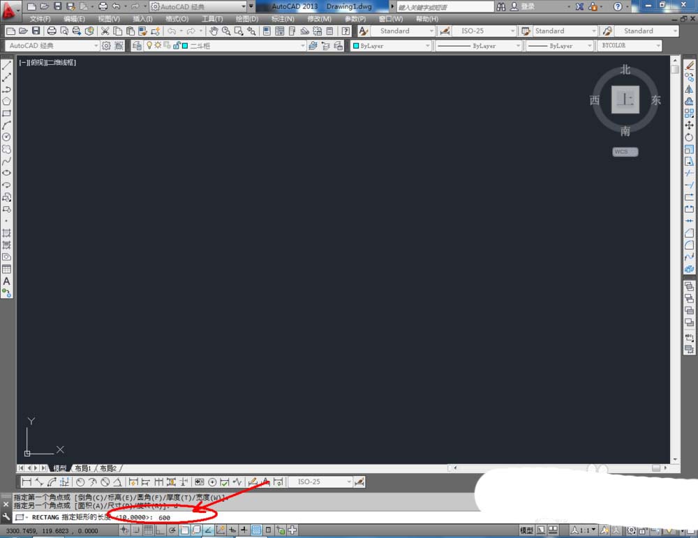 2、點擊【矩形工具】,按圖示在命令欄輸入:d并按下空格鍵,輸入長度值:600并按下空格鍵,繼續輸入寬度數值:500并按下空格鍵,完成矩形圖案的繪制。選中圖案,點擊右邊工具欄中的【分解工具】,將圖案炸開(如圖所示);