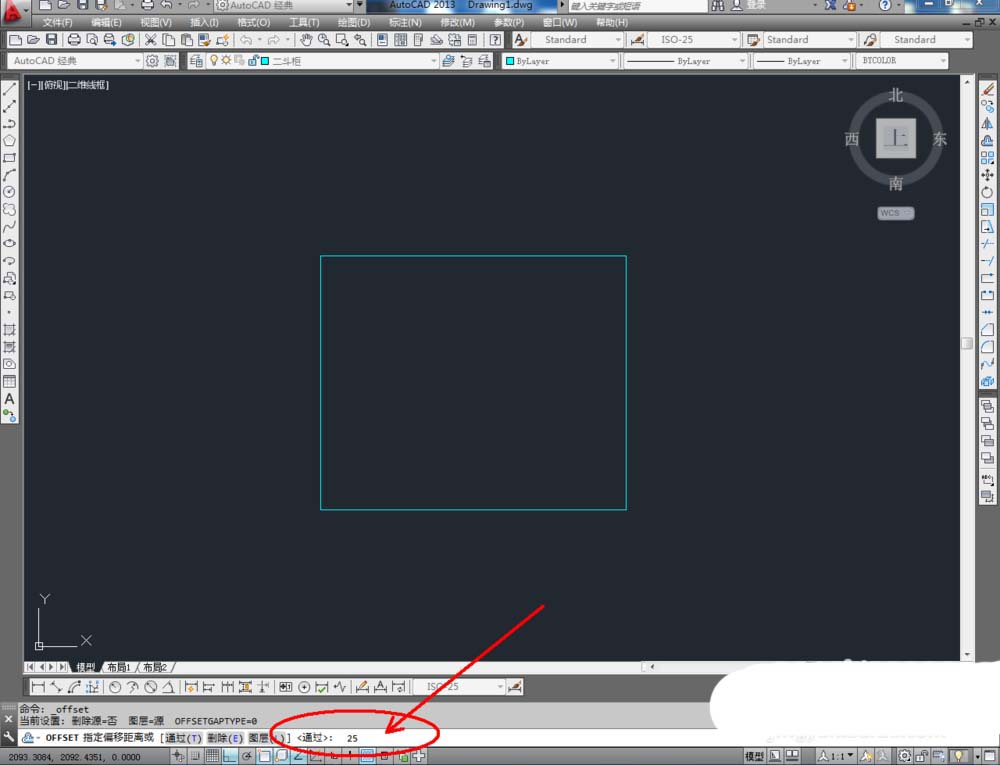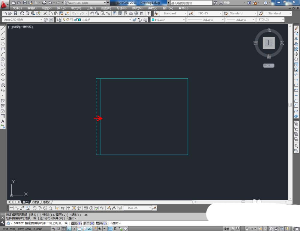 3、點擊右邊工具欄中的【偏移工具】,在命令欄輸入偏移數值:25后,對左右兩邊以及頂邊進行向內偏移操作。在命令欄輸入偏移數值:80后,對圖案底邊進行向上偏移。完成后按圖示調整好偏移線條上的節點(如圖所示);