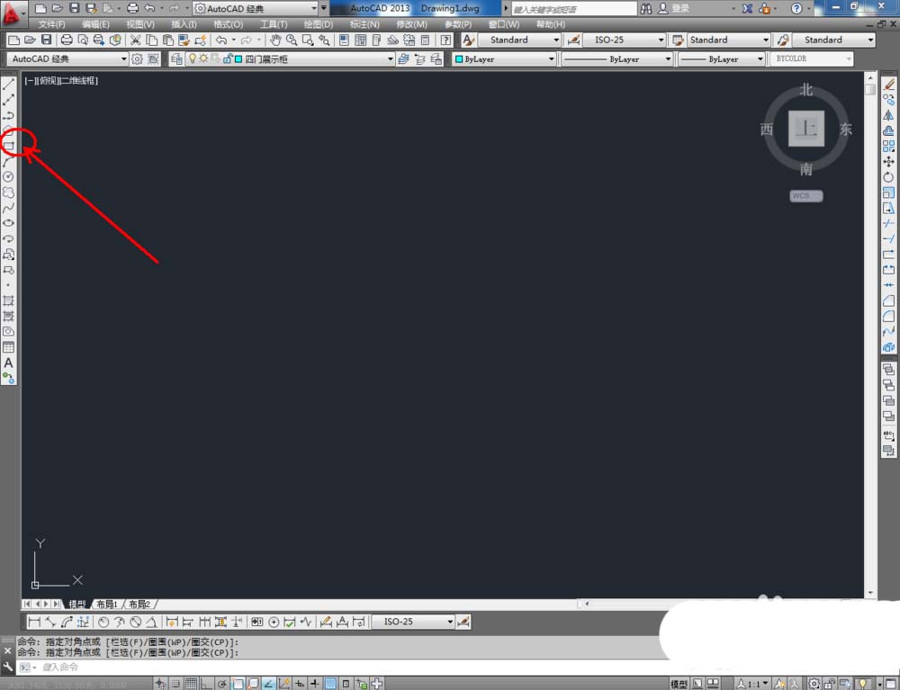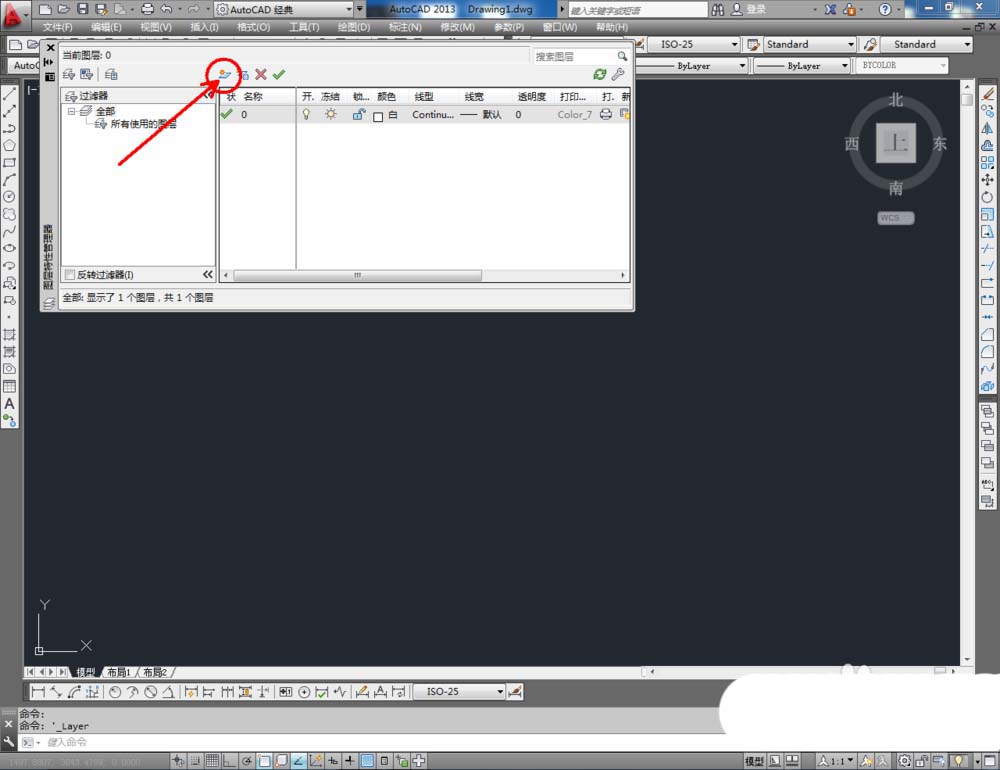 1、打開AutoCAD 2013軟件,點擊【圖層特性管理器】,點擊【新建圖層】,將圖層命名為:四門展柜。點擊色塊,按圖示設置一個圖層顏色,完成四門展柜圖層的設置(如圖所示);