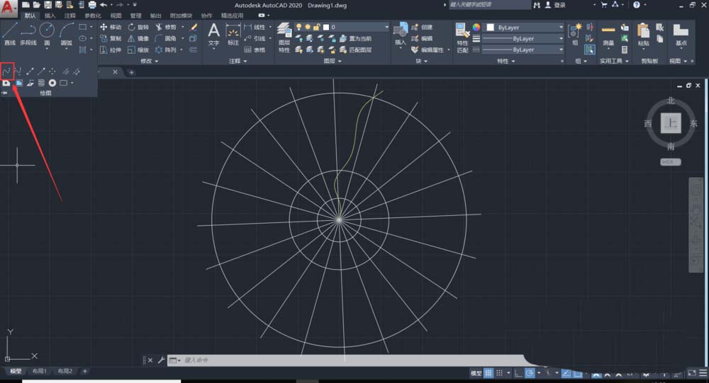 4、使用樣條曲線,參照直線和圓的位置繪制樣條曲線。