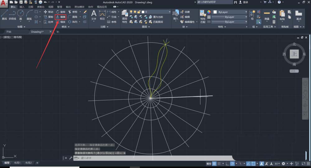 5、以直線為鏡像,將繪制好的樣條曲線進行鏡像。