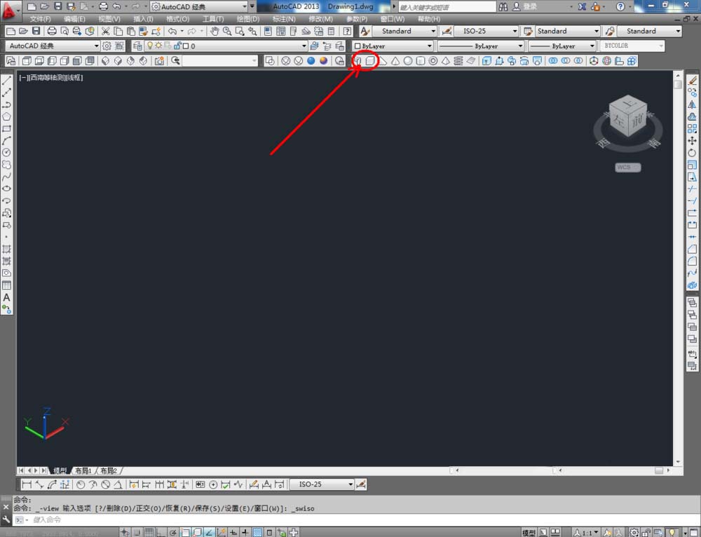 2、點擊視圖工具欄中的【西南等軸測】將視圖切換到西南視圖界面,點擊建模工具欄中的【長方體】工具,按圖示繪制一個長方體模型(如圖所示);