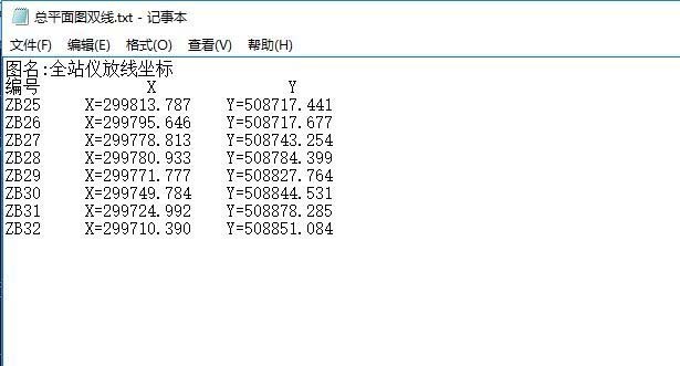 1、將全站儀放線用的坐標(biāo)導(dǎo)出到記事本或者EXCEL中。
