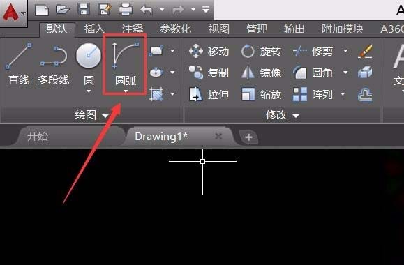 4、繪制好門軸之后我們?cè)谠僬业?span style="color: #ff0000">圓弧選項(xiàng)