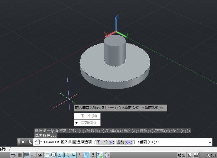 4、選擇好直線后,輸入曲面選擇選項(按回車鍵)。