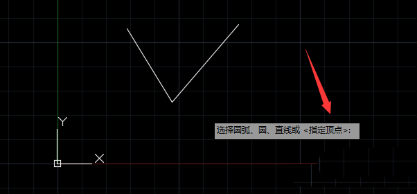 1、打開cad,有如下所示一角,外交為大于180度的鈍角。