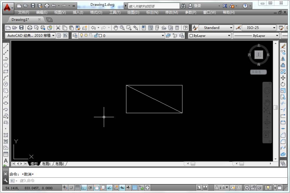 2、在矩形內畫出一條從左上角到右下角的對角線;