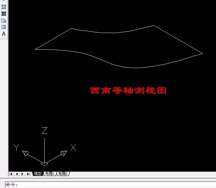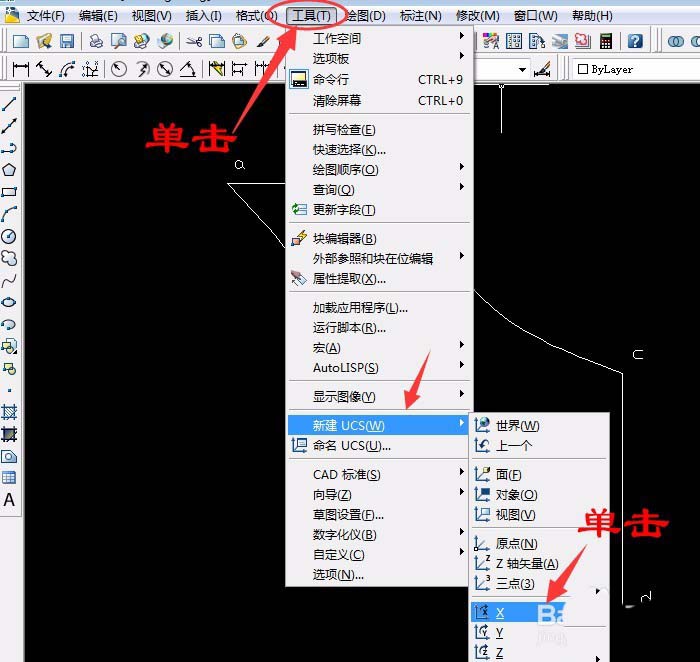 2、單擊“視圖”菜單中“三維視圖”中“西南等軸測”,單擊“工具”菜單中“新建UCS”中單擊X軸,已默認X軸方向旋轉90°按空格鍵確定。