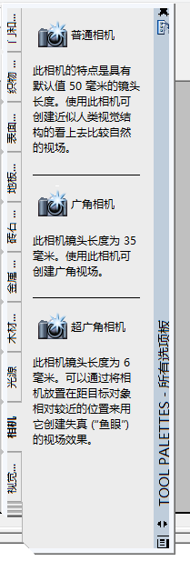 4、在工具選項板窗口左側我們可以看到很多主選項,從這些主選項中的最下面選擇更多以后我們就可以看到相機選項,如圖