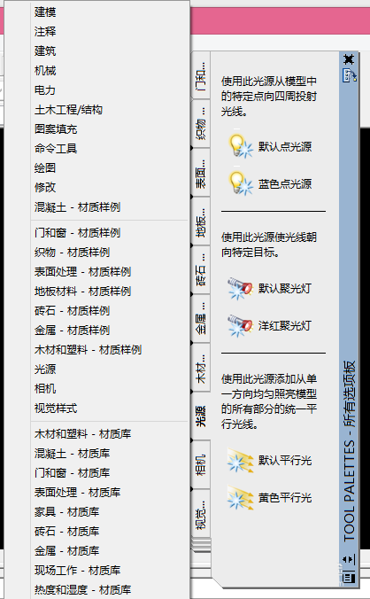 3、從最上面的菜單欄找到工具選項板窗口,打開工具選項板以后的操作界面如圖所示