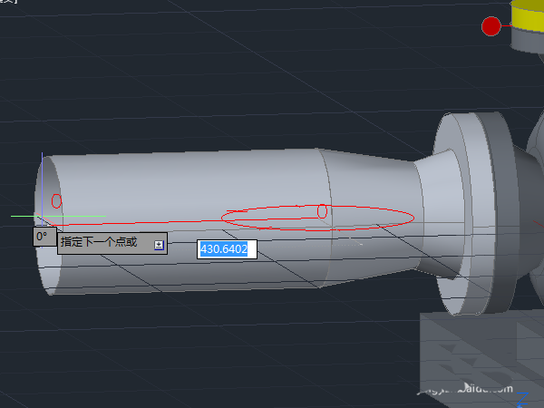 9、接著選一個點,就繪制出了法蘭和一段管線了,如果你想改變管線的繪制平面,輸入p命令。
