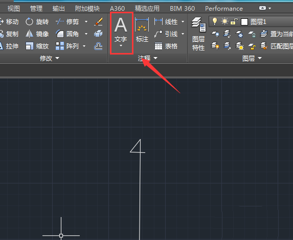 2、繪制好方向示意圖之后再在上找到文字選項,如圖所示: