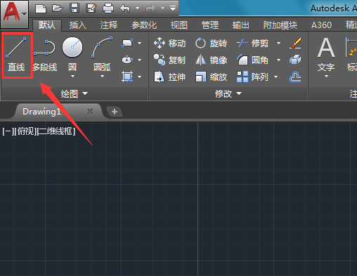 4、標注好指北方向之后再在繪圖里找到直線選項,如圖所示: