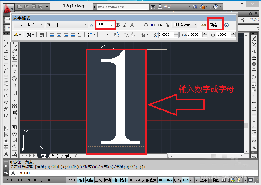 5、把字高改成比圓直徑稍小一點,輸入數字,點確定!