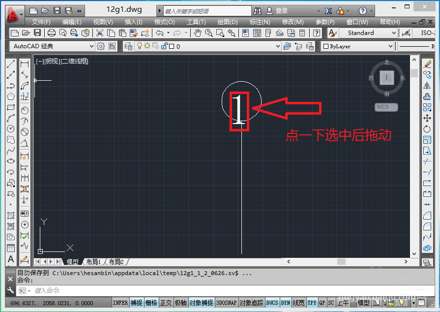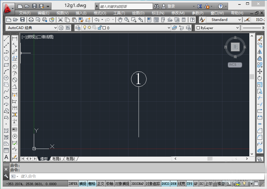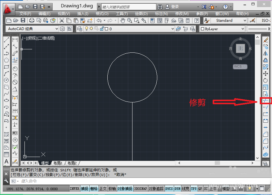 3、ctrl+a全選,tr修剪,去掉圓中多余的線,效果如下圖: