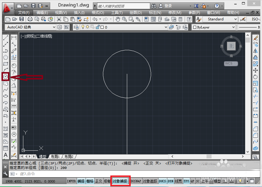 2、打開對象捕捉,在端點處畫圓,如圖: