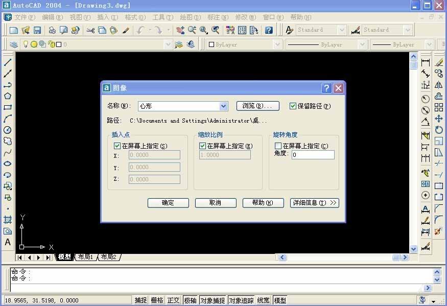 1、打開CAD軟件點擊“插入”下拉菜單里的“插入光柵圖象”