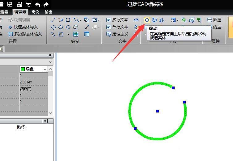 6、當然,我們也可以通過相比位移實現對特定實體的移動操作。選中實體對象, 在“工具”欄目中點擊“移動”工具。