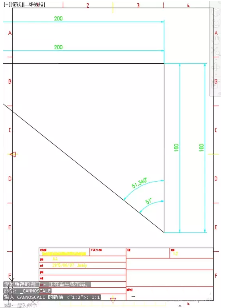 6、接下來更改視口比例至1:2。 可以看到,不帶注釋性的標注跟著一起縮小了,帶注釋性的標注文字(還有箭頭)相對圖紙的高度并沒有減小。