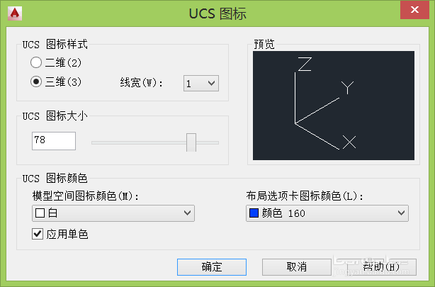 4、點擊特性選項,彈出UCS圖標對話框,如圖所示: