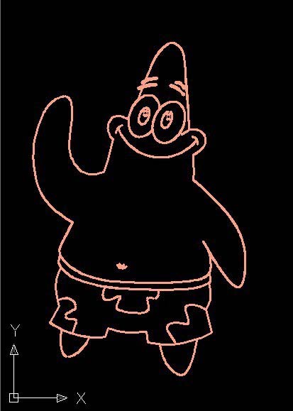 單擊“繪圖”菜單欄中的“直線”按鈕,繪制端點(diǎn)坐標(biāo)為(420,122),(@68<90);(@68<90),(@23<180)的折線,折線繪制完成。卡通造型就繪制完畢了。