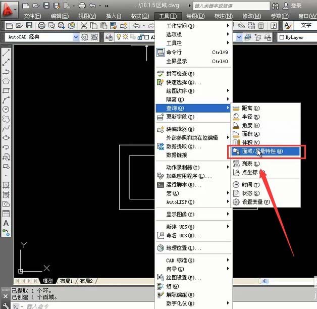 5、執行工具--查詢--面積/質量命令。