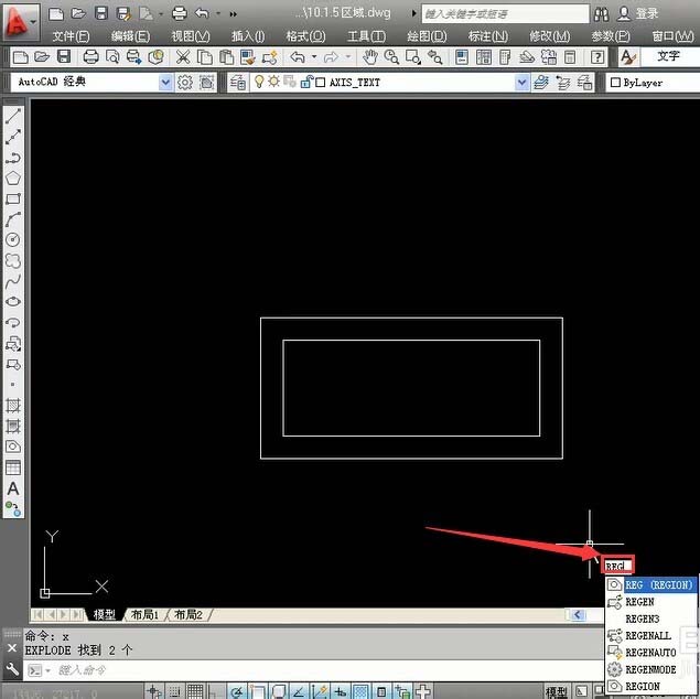 3、在命令行中執行“REG”命令。